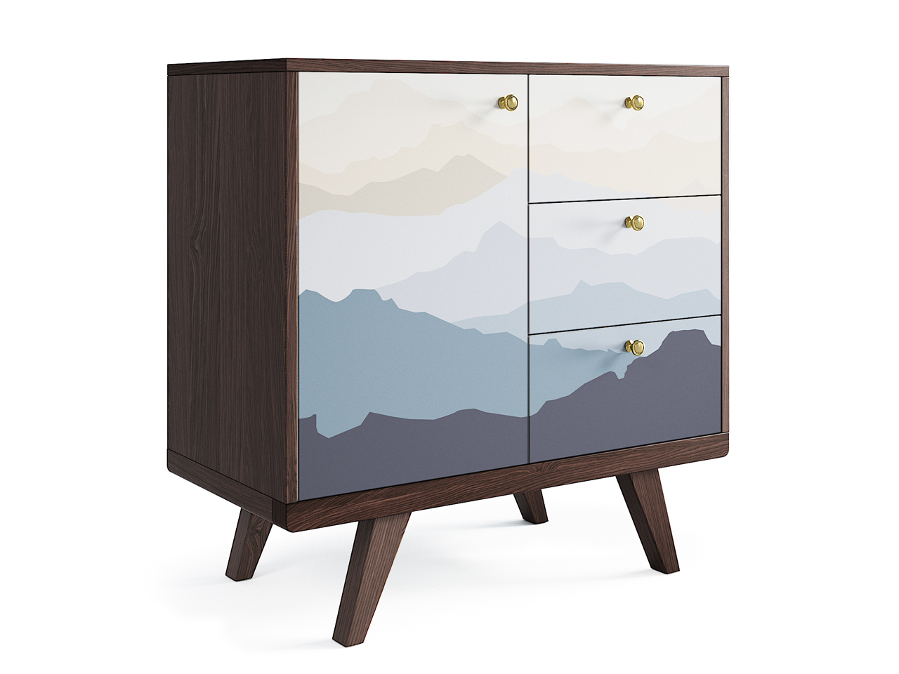 Мини-комод Thimon – очень компактная модель, которую можно разместить в коридоре или в небольшой комнате. При этом комод сохраняет характерные черты коллекции – нанесение оригинальных принтов на фасады, использование натуральных материалов и качественной фурнитуры с доводчикамиОсобенности.Более 50 принтов в коллекции и 7 вариантов отделки корпуса, не влияющих на стоимость и срок изготовления. Фасады могут быть в натуральном шпоне дуба, без принта.Внутреннее наполнение из износостойкого ЛДСП.Латунированные ручки-кнопки с эффектом патины.Принты устойчивы к солнечным лучам и моющим средствам.Все фасады регулируются для аккуратной стыковки изображения.Корпус защищен матовым лаком.Материалы.Основание – массив дуба.Корпус – МДФ, натуральный шпон дуба.Фасады – МДФ.Ящики и полки – ЛДСП, светло-серый.Фурнитура – направляющие и петли с доводчиками, стальные крепежные элементы. Покрытие – тонировка, матовый лак, эмаль, принт. Мини-комод THIMON Темный дуб Принт №021