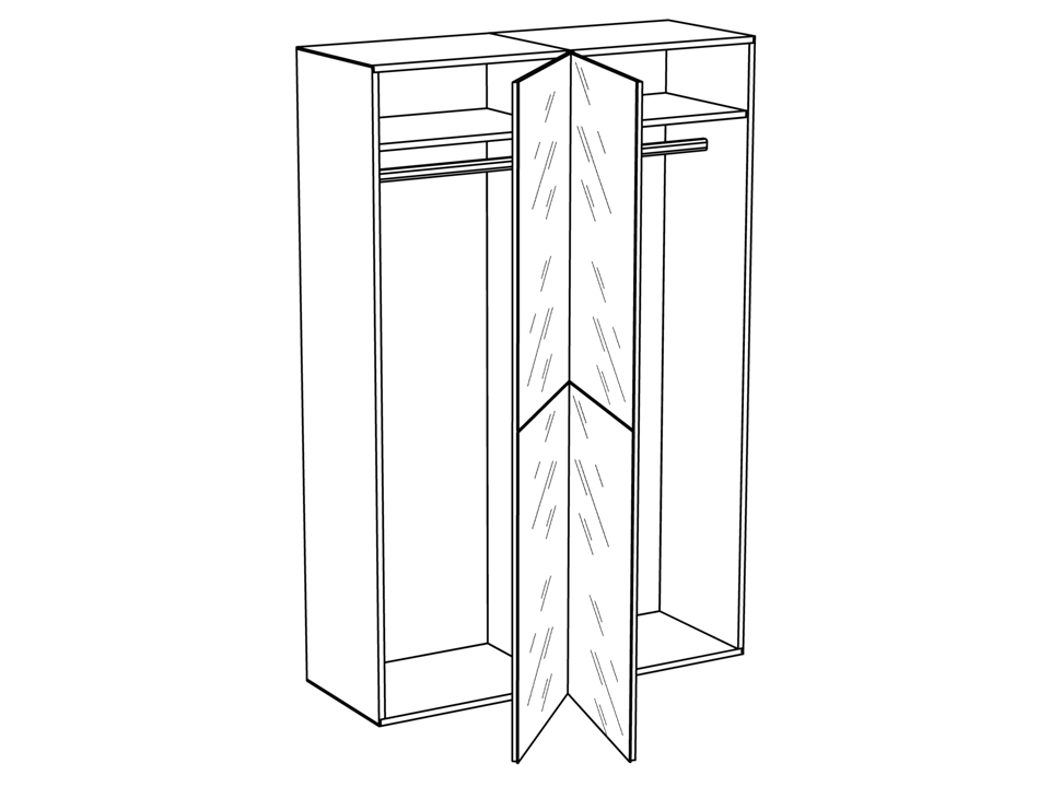 Шкаф для хранения одежды, состоит из двух отделений. В каждом отделении - полка для шляп и металлическая штанга.