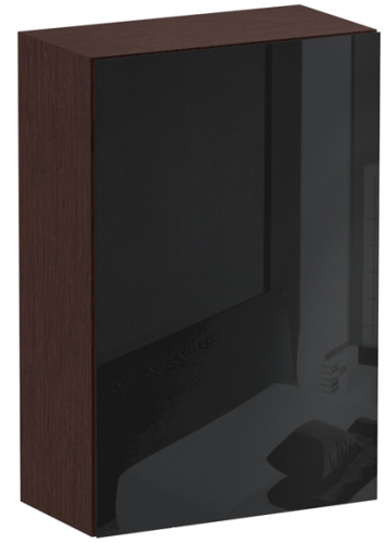 Шкаф с одним отделением за распашной дверью. Наполнение шкафа - две полки. В комплекте идут щитовая и стеклянная полки. Дверь открывается по принципу «нажал-открыл». Шкаф крепится к стене.