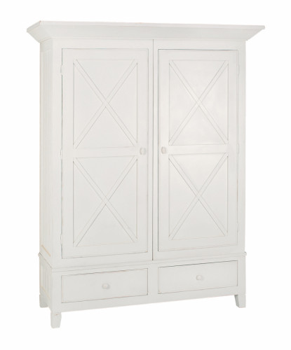 Шкаф платяной двухдверный Бретань с состариванием белый