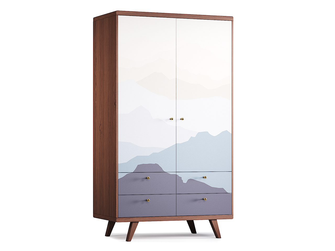 Шкаф Thimon №2 с ящиками дополняет коллекцию изделий The IDEA с принтами на фасадах. Удобно организованное пространство для хранения в верхней секции с переставляемыми полками позволяет разместить длинные вещи на плечиках, а четыре выдвижных ящика способны обеспечить порядок в остальных вещах. Благодаря качественной фурнитуре дверцы и ящики шкафа закрываются без усилий, а утонченные ручки цвета состаренной латуни привносят лаконичный акцент.Особенности.Стильное решение для размещения полноценного гардероба.Прочные и экологичные детали наполнения и усиленная конструкция ящиков из ЛДСП.На ящиках установлены направляющие Blum скрытого монтажа с доводчиками.Все фасады регулируются в трех плоскостях для аккуратного выравнивания узора гравировки.Задние ножки установлены с отступом для плинтуса.Предусмотрен крепеж к стене.Легко установить любые ручки-кнопки.Можно заказать фасады с покрытием натуральным шпоном дуба и без принта.Материалы.Основание – массив дуба.Корпус – МДФ, натуральный шпон дуба.Фасады – МДФ.Ящики, полки и перегородки – ЛДСП, светло-серый.Фурнитура – петли с плавным закрыванием, направляющие Blum с доводчиками, стальные крепежные элементы. Покрытие – тонировка, матовый лак, эмаль, принт.