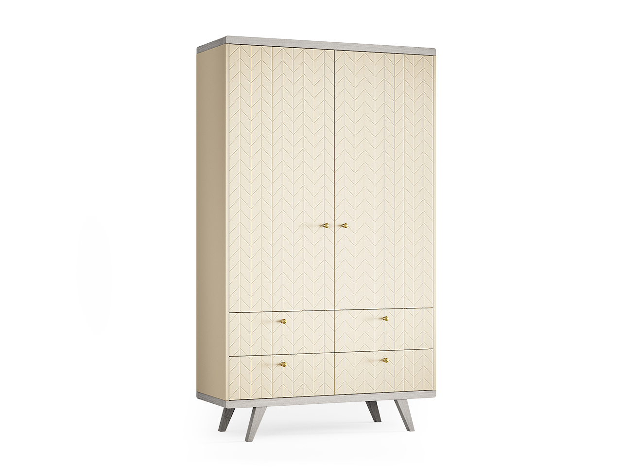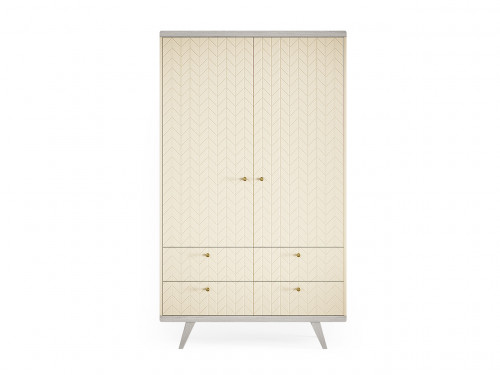 Шкаф THIMON v2 с ящиками и симметричными фасадами способствует организованному хранению вещей – за фасадами с рельефным узором скрыты полки и штанги для одежды, а внизу расположены глубокие выдвижные ящики. Шкаф поделен на удобные секции, позволяющие переставлять полки по высоте, обеспечивая место для хранения длинных платьев или пальто.Особенности.Стильное решение для размещения полноценного гардероба.Прочные и экологичные детали наполнения и усиленная конструкция ящиков из ЛДСП.На ящиках установлены направляющие Blum скрытого монтажа с доводчиками.Все фасады регулируются в трех плоскостях для аккуратного выравнивания узора гравировки.Задние ножки установлены с отступом для плинтуса.Предусмотрен крепеж к стене.Легко установить любые ручки-кнопки.Материалы.Основание – массив дуба.Корпус – МДФ.Фасады – МДФ.Полки и перегородки – ЛДСП, светло-серый.Фурнитура – петли и направляющие с плавным закрыванием, стальные крепежные элементы. Покрытие – тонировка, матовый лак, эмаль.
