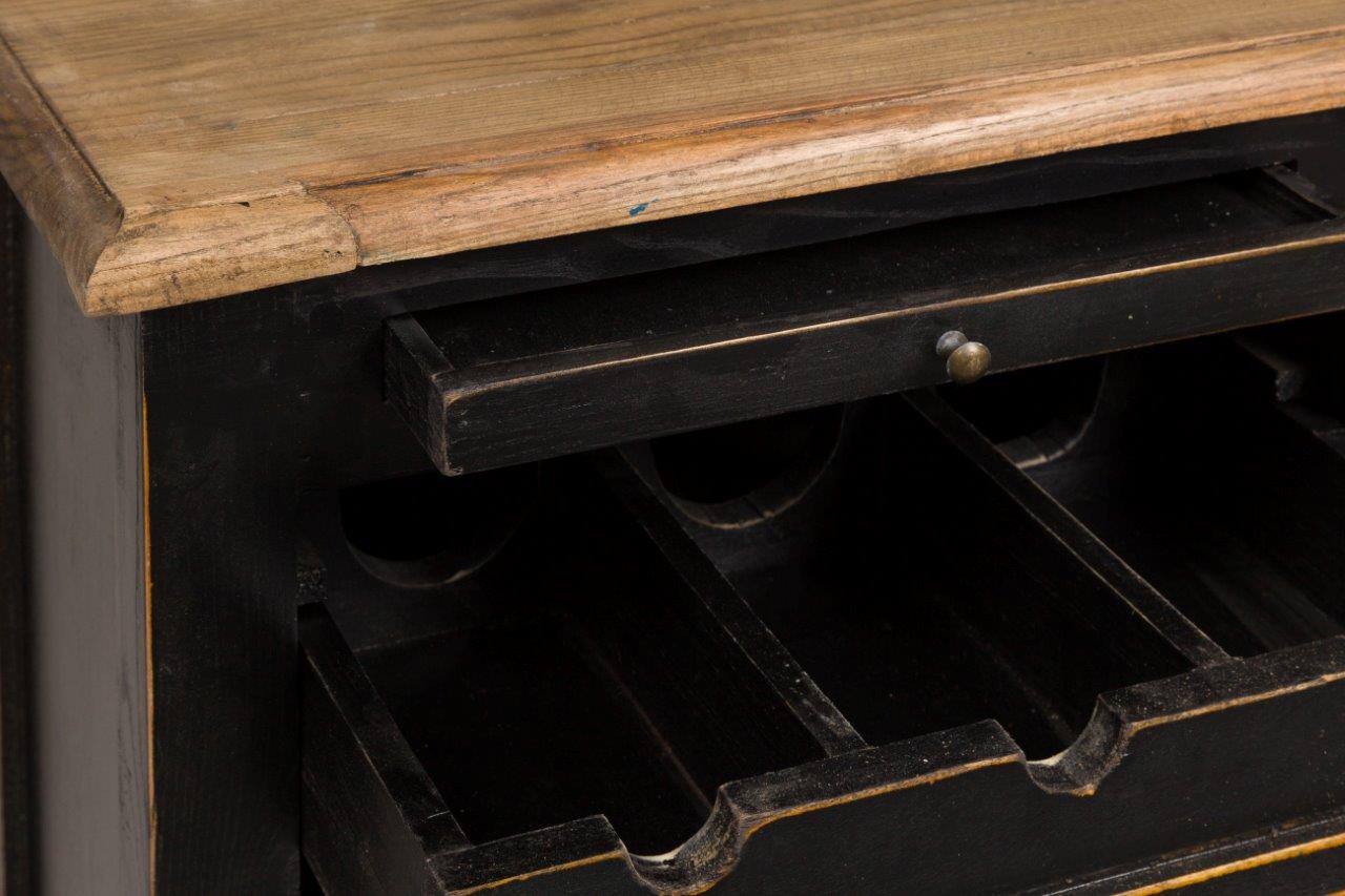 Солидный, созданный под старину, винный шкаф Darrell — настоящее сокровище для благородного джентльмена, радушно встречающего близких друзей в уютной и приватной обстановке. Выполненный из массива натурального дерева вяза, шкаф символически подчеркивает статус и благосостояние владельца. Простой и строгий дизайн не оставляет места для сомнений, что владелец состоятельный и деловой человек. Удобная конструкция из пары выдвижных ящичков и полуоткрытых полок под винные бутылки это то, что нужно для человека, ценящего роскошную простоту. Винный шкаф будет великолепен в домашнем кабинете или гостиной, и отлично дополнит собой интерьер любого направления. С этим шкафом в ваш дом придет тепло и особая атмосфера.