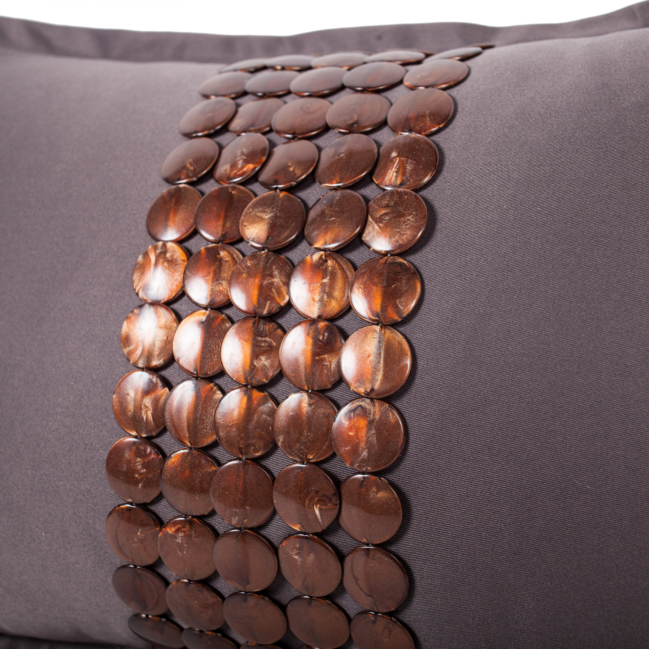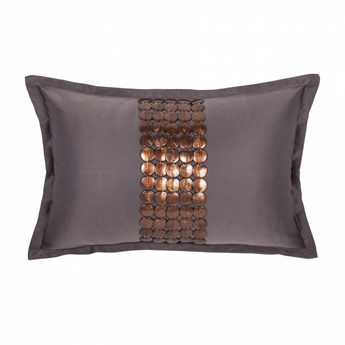 Декоративные подушки способны на все. Этот предмет сумеет дополнить любой интерьер. И наполнит уютом. Подушки могут добавить солидности помещению, или, наоборот, расположить к неформальной обстановке. Все дело в деталях. Подушка Handwork Exclusive выполнена из темно-серого сатина и декорирована вручную. Посредине располагается 5 рядов пластиковых клепок насыщенного цвета. Прямоугольная форма позволит преобладать удобству, подложить под спину или шею после рабочего дня. Густой цвет ткани и переливчатость декора выглядят роскошно. Такая подушка наполнит дом сиянием и блеском.